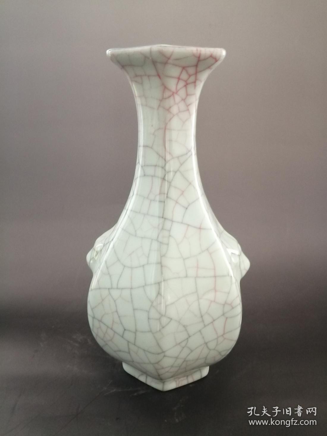 宋代官窑开片双耳瓶