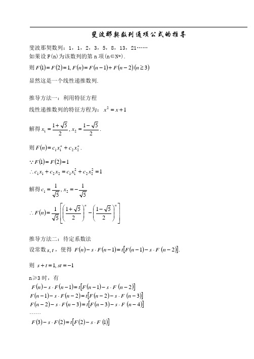 斐波那契数列通项公式的求法 - 图文 - 百度