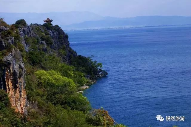 禄充风景区位于抚仙湖西岸,天空蔚蓝,是一个休闲度假的完美景点