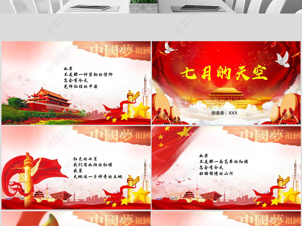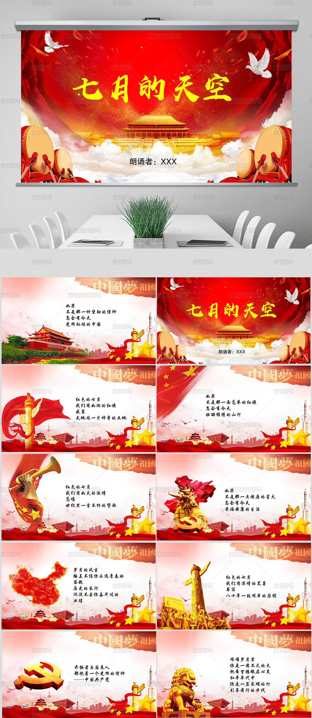 七月的天空光辉的历程建党节诗歌朗诵PPT建党98周年
