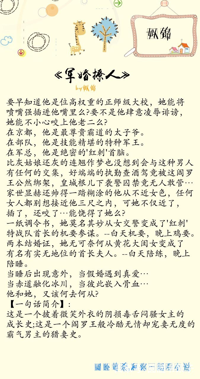 小说推荐:一波姒锦的宠文!男强女强军旅文,