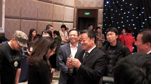 怀忠民左与里景瑞右握手。 摄影记者张春雷