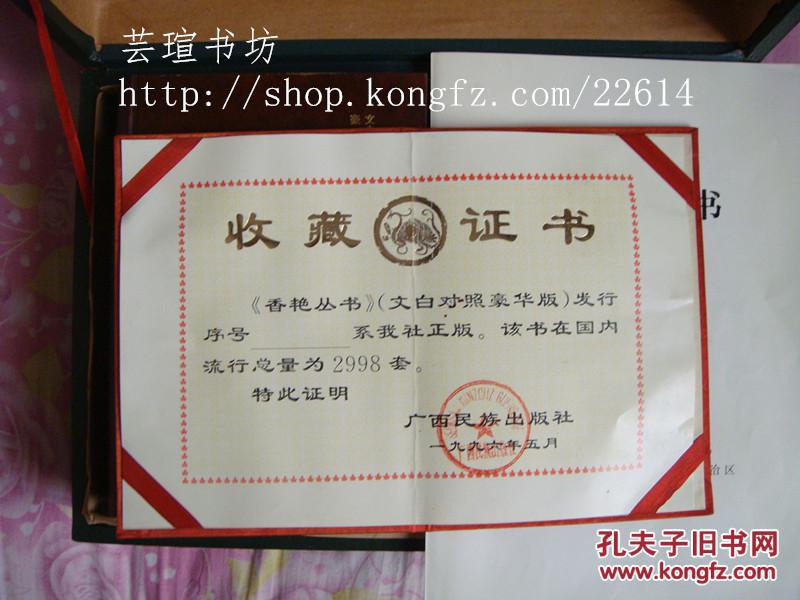 文白对照豪华版香艳丛书\/精装上中下全三册,原木箱装。广西民族96年限量版,限印2998套,本书编号为000403,有公证书和收藏证书