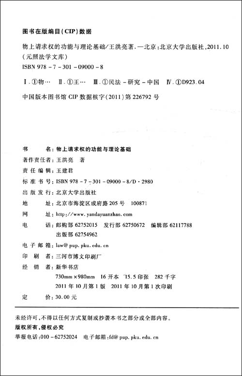 物上请求权的功能与理论基础,王洪亮 著