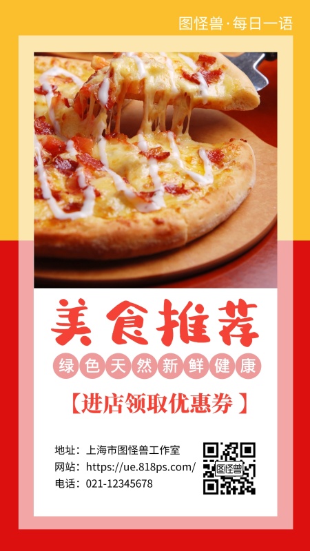 美食推荐进店有礼创意手机海报