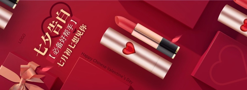 口红七夕约会告白红色礼盒创意电商全屏海报
