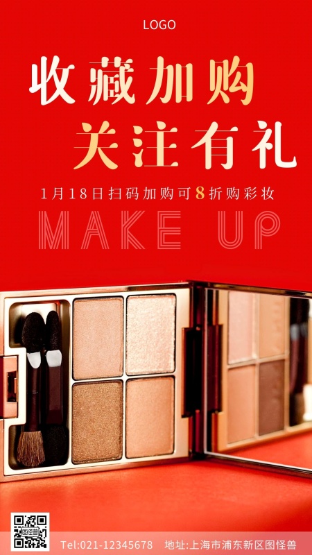 收藏加购关注有礼红色简约创意手机海报