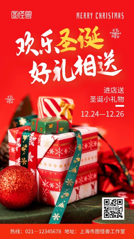 圣诞有好礼红色创意宣传摄影图手机海报