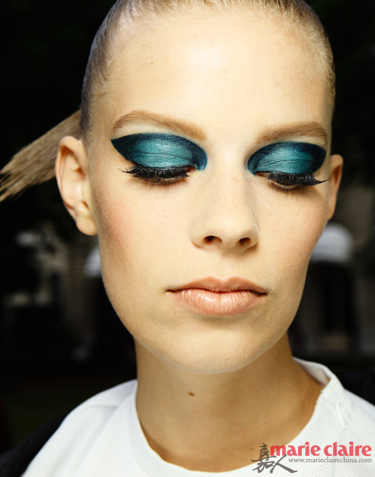 秀场妆容孔雀蓝眼彩+裸唇
