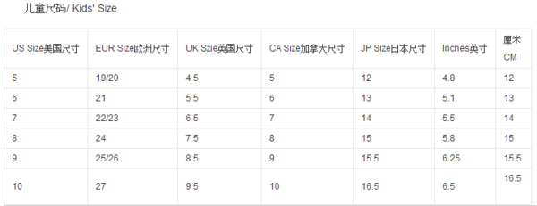 北面鞋的鞋码对比中国\/美国\/国际鞋码对照