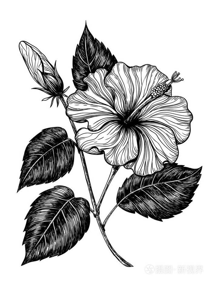 芙蓉花画插画-正版商用图片083foh-摄图新视界