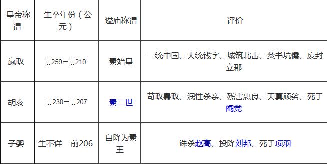 秦国皇帝列表及简介 秦国皇帝列表及名字
