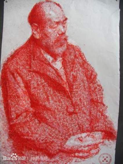 中央美院附中仲明亮两张素描,第一张用印章完成,第二张用沙子完成