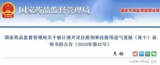 国家药监局责令清开灵注射剂修改说明书: