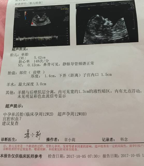 NT顺利通过,宫腔积血卧床保胎!