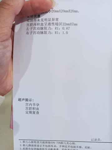 NT检查显示宫腔积血,怎么办?_孕12+2,B超