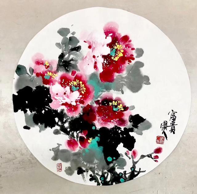 小写意牡丹王奕茗老师祝福辉染纸上,十