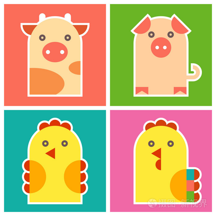 矢量图的农场动物。马、 羊、 猪和牛 o