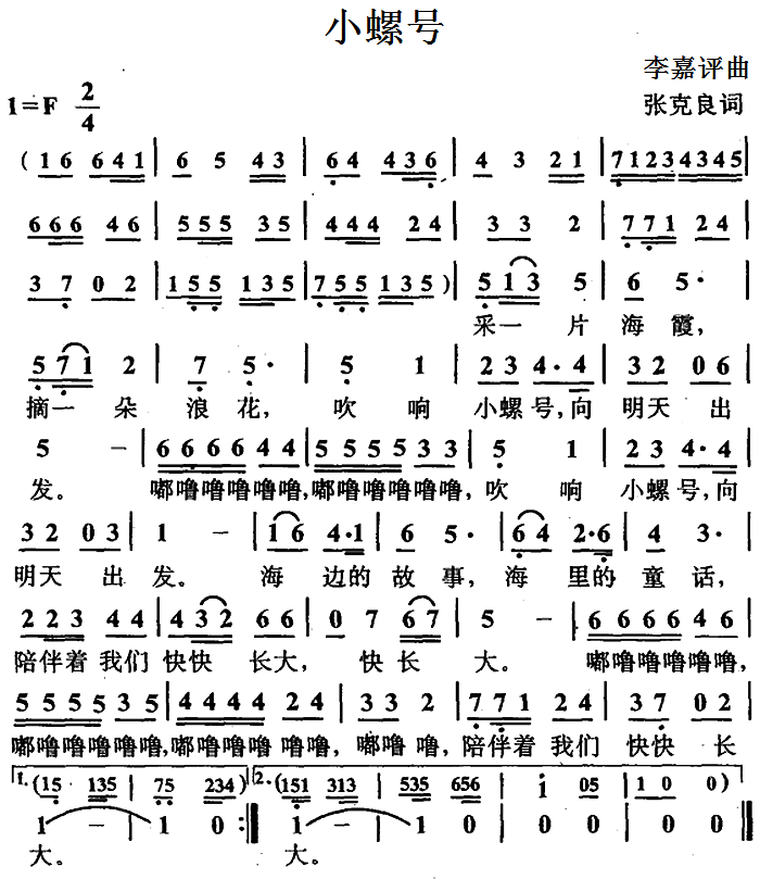 小螺号 小学音乐教材 钢琴双手简谱 儿童