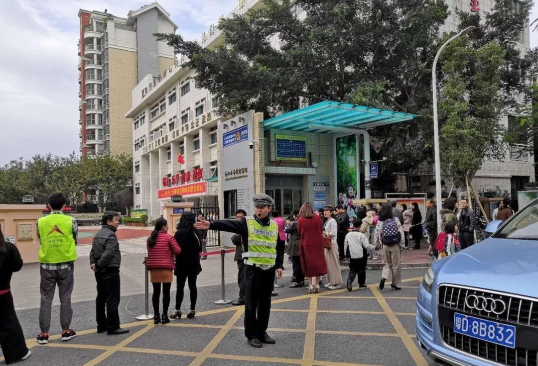 上演暖心一幕,辅警为风雨中接小孩家长撑伞