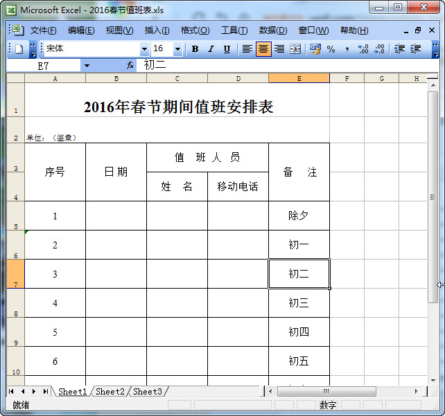 春节值班表格式范本