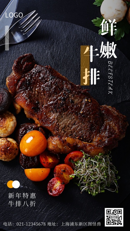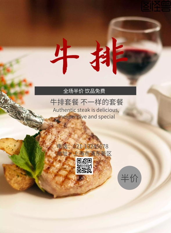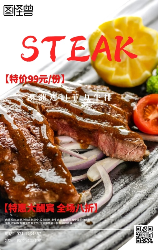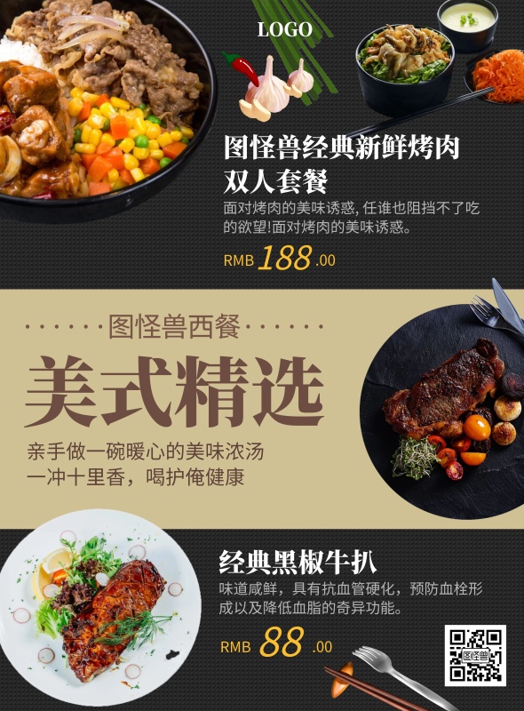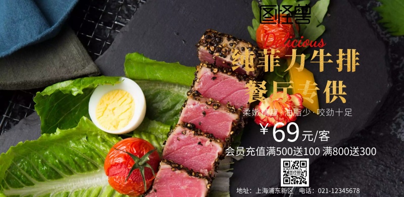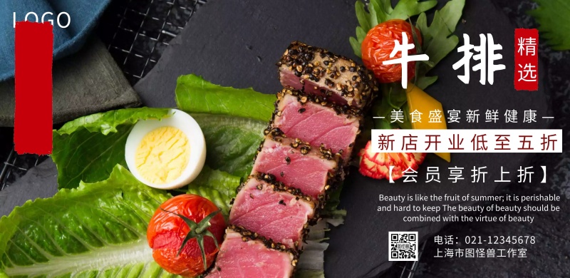 牛扒饭易拉宝棕色淡色宣传美食配图优惠