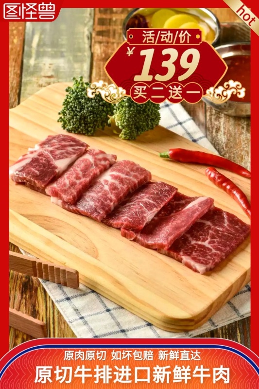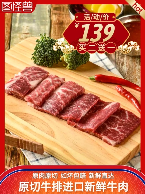 原切牛排进口新鲜牛肉红色简约主图直通车
