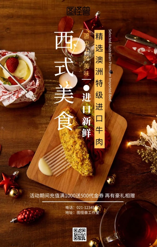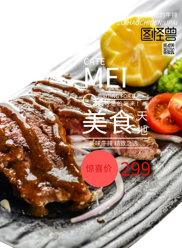 红色中式调味料美味澳洲牛排淘宝主图直通车