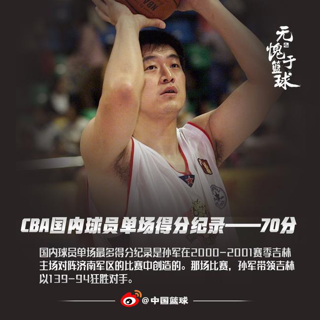 CBA五大神奇记录:虎王孙军单场70分,八一