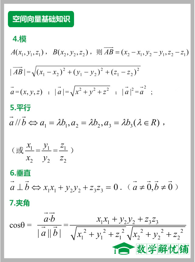 高中数学知识总结:空间向量所有的计算公式都在这里了