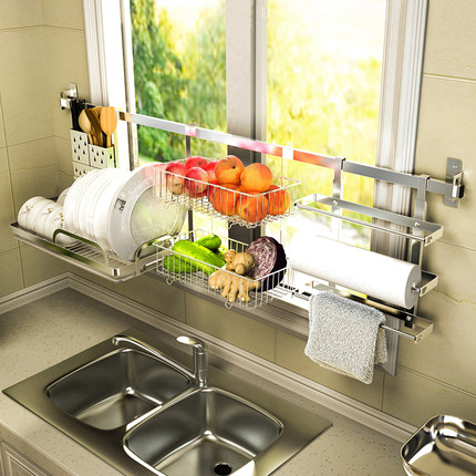 打孔厨房沥水碗架不锈钢窗台置物架水槽