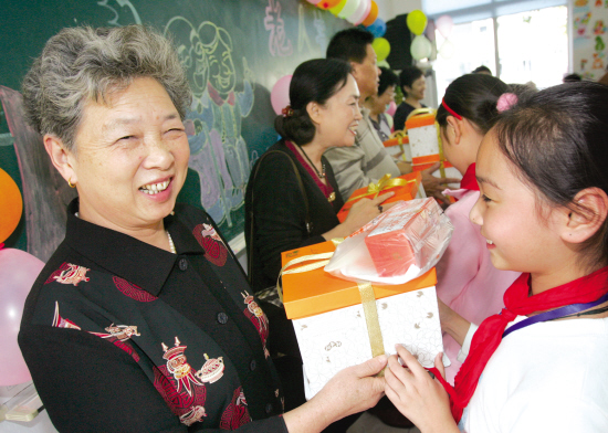 小孩子送礼物给爷爷奶奶