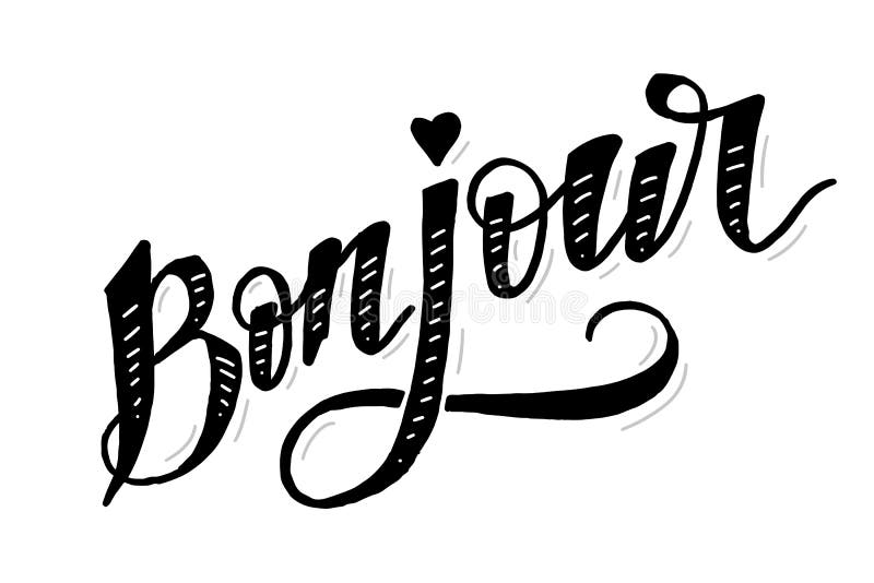 男人手用黑色马写 Bonjour (早上好法语)