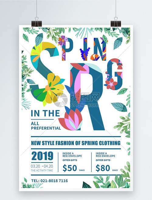 英文清新春季促销海报