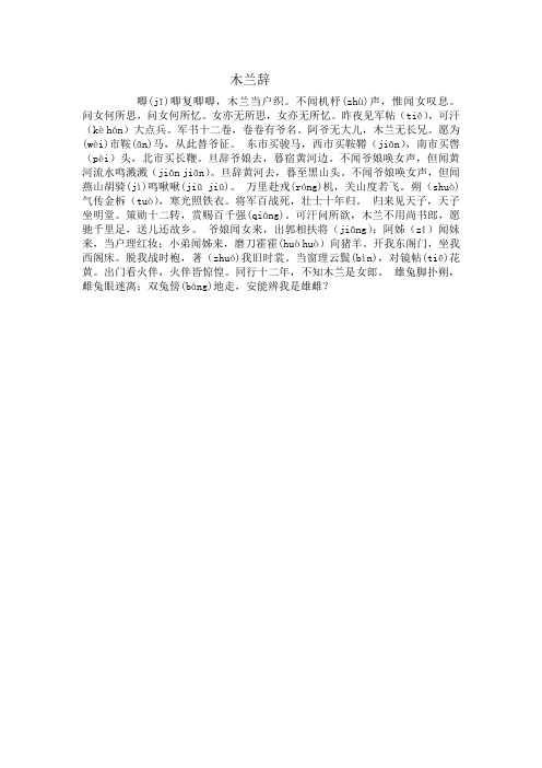 木兰辞拼音打印修正版