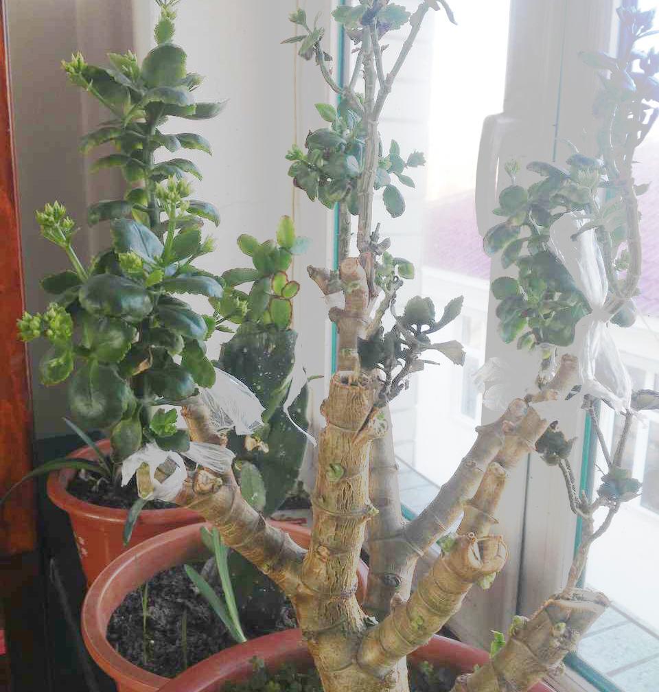 长寿花嫁接到玉树上,开花多,长势更旺,变成