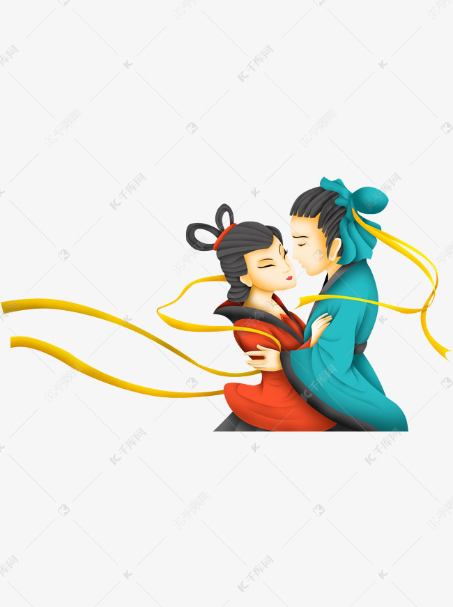 卡通汉服丝带牛郎和织女素材图片免费下载