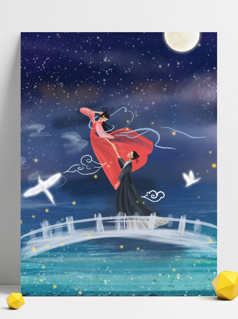 七夕-牛郎织女鹊桥相会(竖)_创意图片