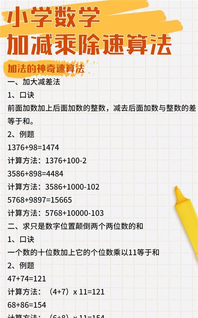 小学加减乘除速算法:例题+技巧,寒假让孩子
