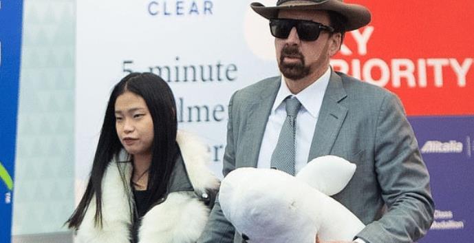 57岁尼古拉斯凯奇真会玩,拉着娇妻的手不