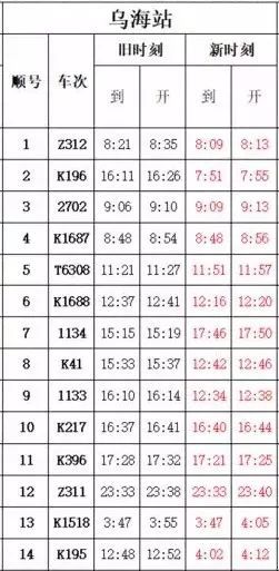 今天起 乌海执行最新列车时刻表