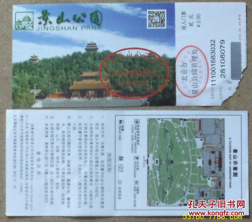 景山公园门票一对(成人+学生票)-价格:3元-