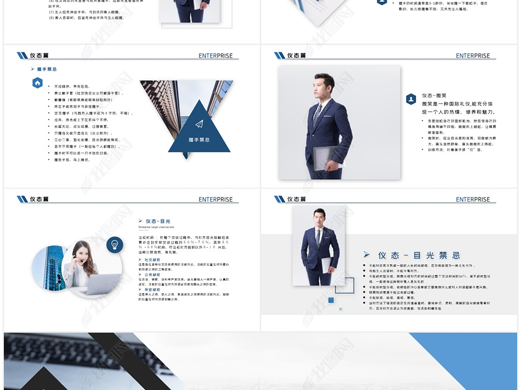 蓝色商务大气商务礼仪仪表仪态篇培训PPT模板
