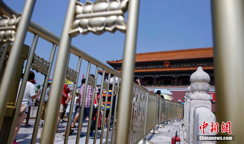 高清:北京天安门金水桥装金护栏