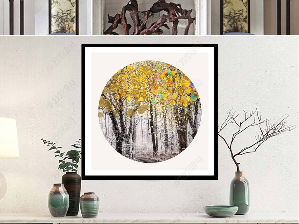 金色森林新中式金箔画发财树装饰画