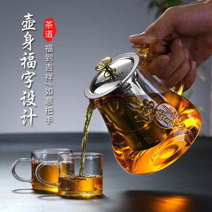 佳偶耐热玻璃过滤花茶壶功夫红茶具家用泡茶杯不锈钢泡茶壶冲茶器