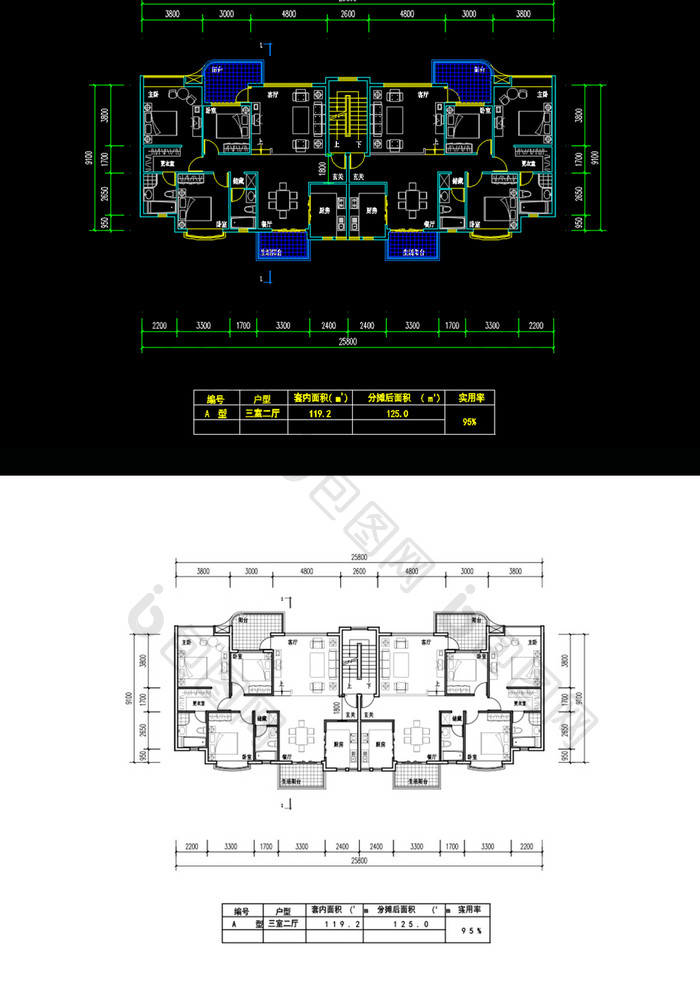 一梯两户多层住宅户型平面图免费下载- 户型平面图-工程网