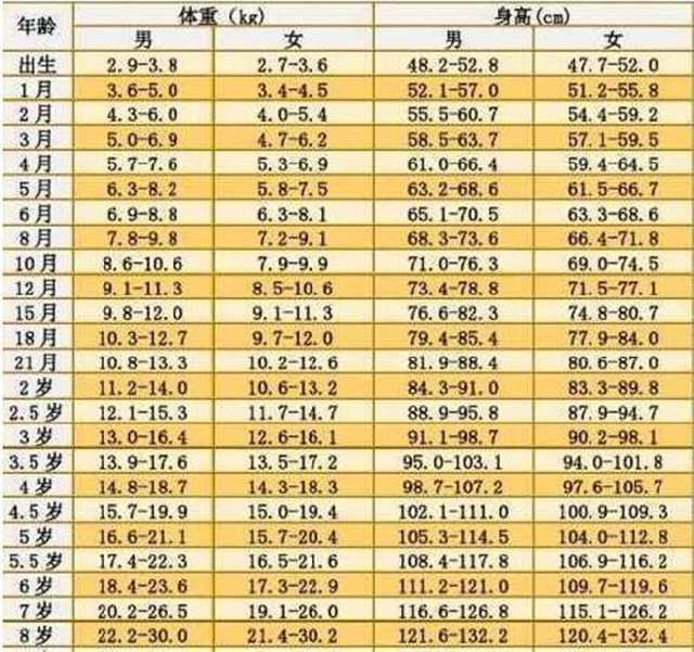 0-7岁男女孩身高体重标准表,你家孩子达标