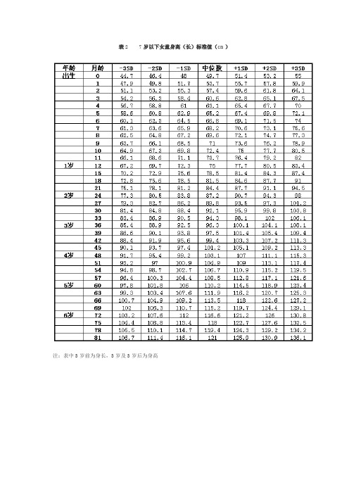 组织:儿童年龄、身高和体重生长标准(女孩)