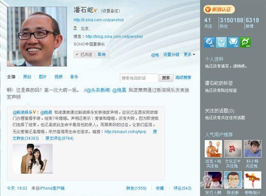 潘石屹微博7分钟拉升股价 名人大嘴搅市